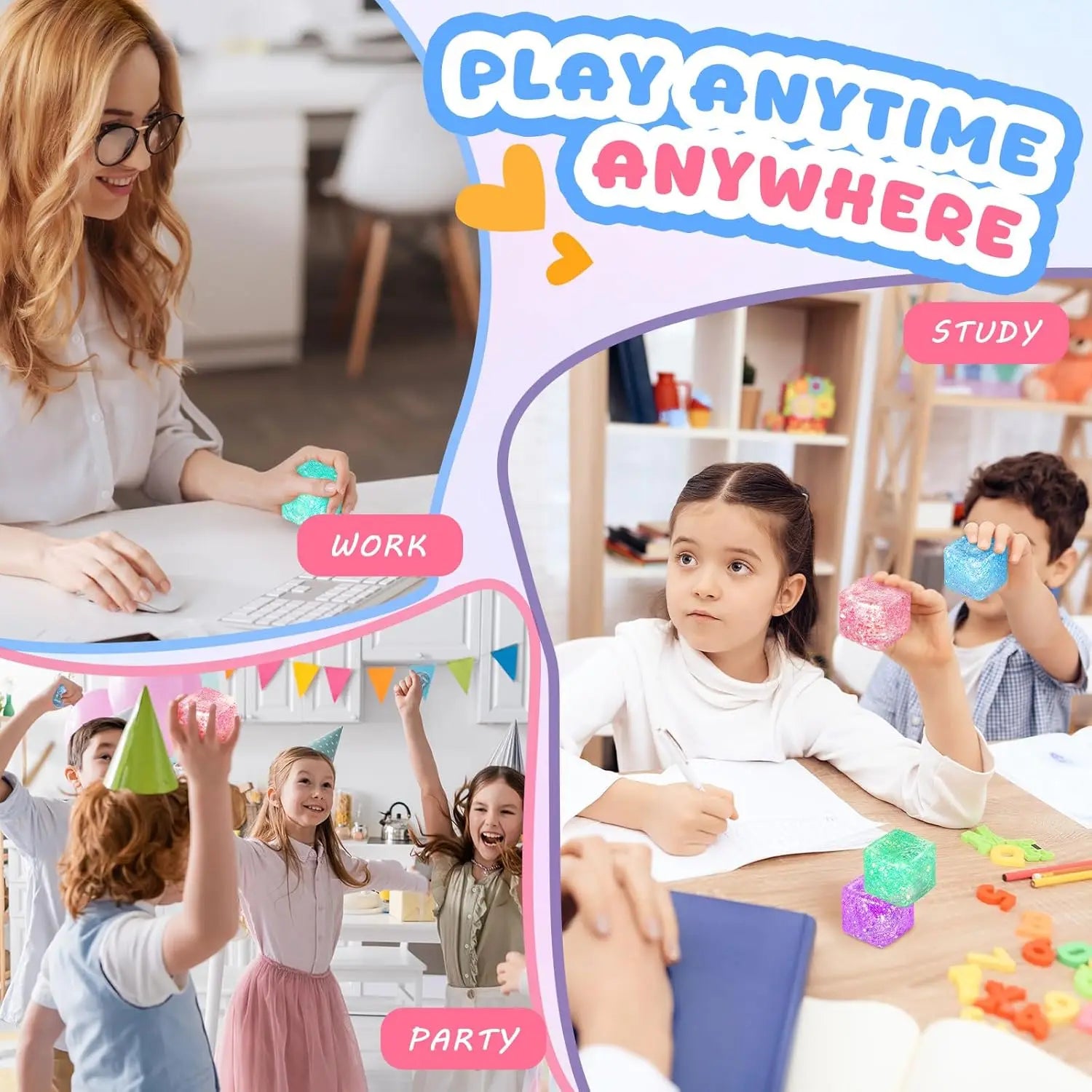 Meet a pocket-friendly, multi-sensory relief companion: Glitter Stress Cube and Maltose-Texture Sugar Blocks. This tactile duo is crafted for both kids and adults, turning squeeze, stretch, and squish into a concrete way to ease tension, reduce anxiety, and improve focus in the moment.